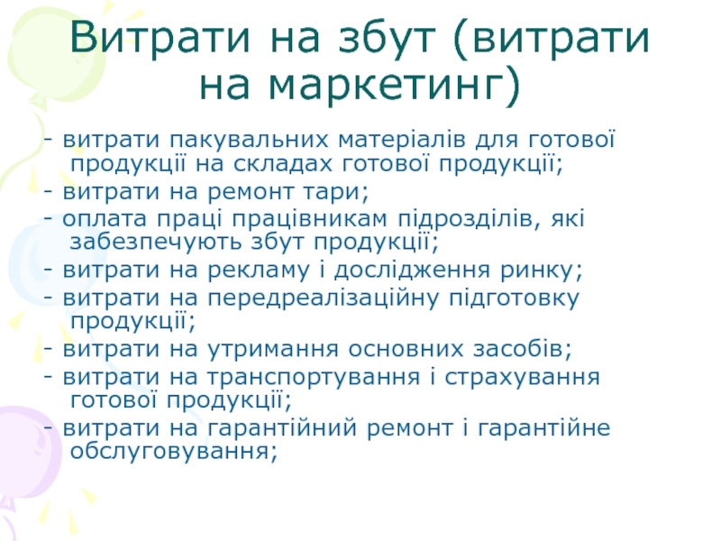 Слайд 16Витрати на збут (витрати на маркетинг)