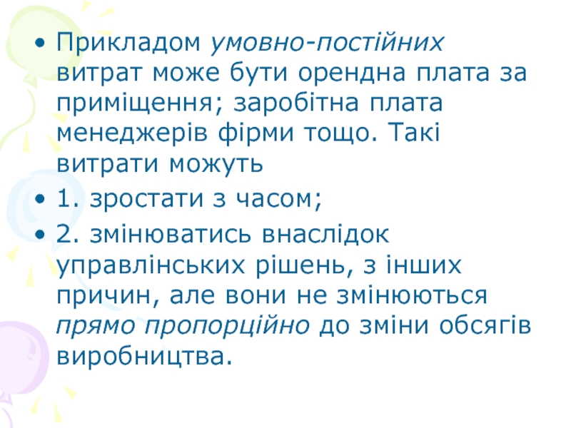 Слайд 35Прикладом умовно-постійних витрат може бути орендна плата за приміщення; заробітна