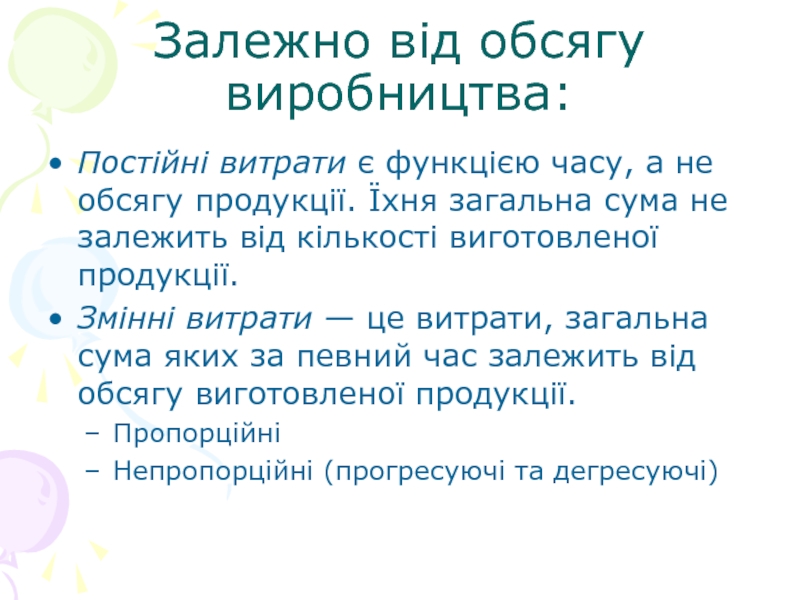 обсягу продукції. Їхня загальна сума не залежить від кількості виготовленої