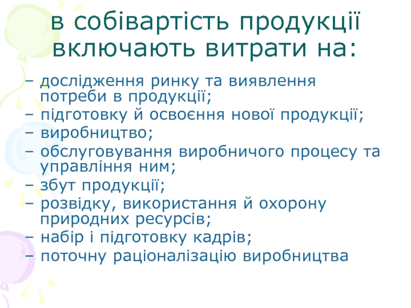 Слайд 3Собівартість продукції — це грошова форма витрат на підготовку виробництва,