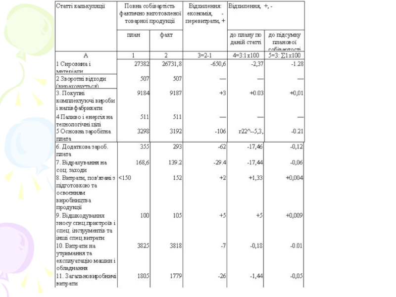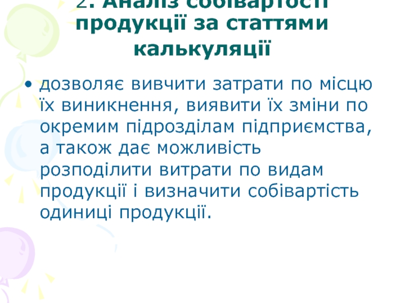 Слайд 452. Аналіз собівартості продукції за статтями калькуляції