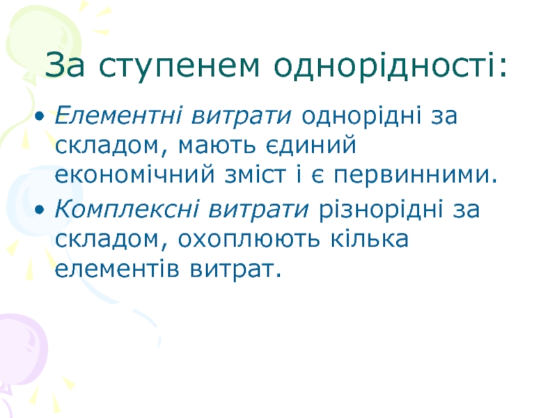 Елементні витрати однорідні за складом, мають єдиний економічний