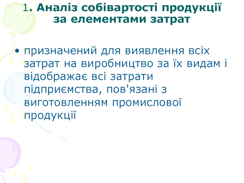 Слайд 431. Аналіз собівартості продукції за елементами затрат