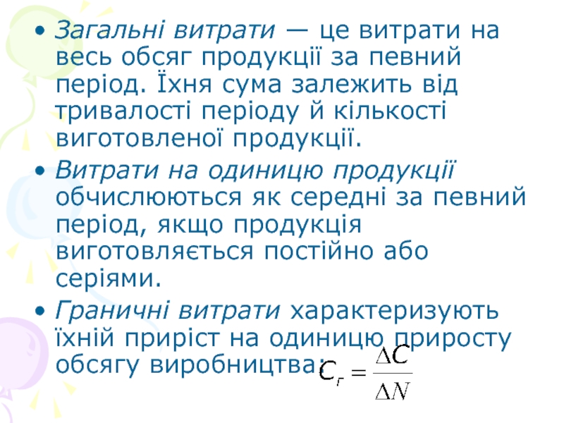 Слайд 5Загальні витрати — це витрати на весь обсяг продукції за