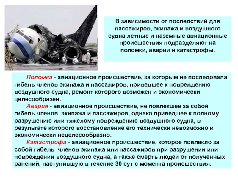Слайд 13В зависимости от последствий для пассажиров, экипажа и воздушного судна