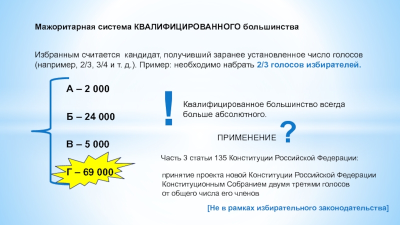 Слайд 11Мажоритарная система АБСОЛЮТНОГО большинства: