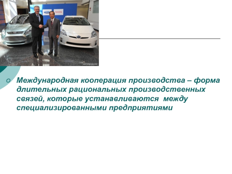 Международная кооперация производства – форма длительных рациональных производственных связей, которые