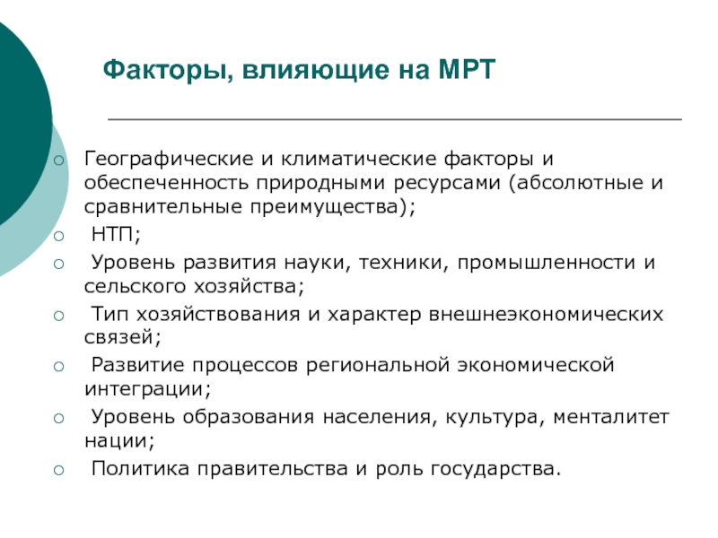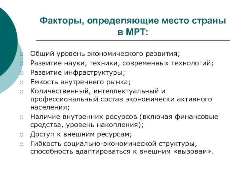 Факторы, определяющие место страны в МРТ: