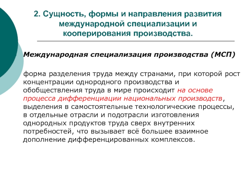 2. Сущность, формы и направления развития международной специализации и кооперирования