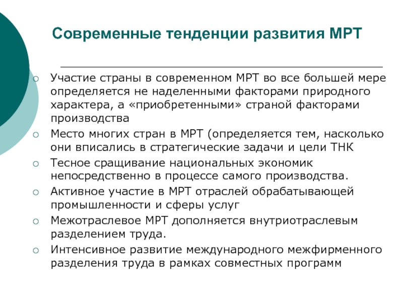 Межотраслевое МРТ дополняется внутриотраслевым разделением труда.