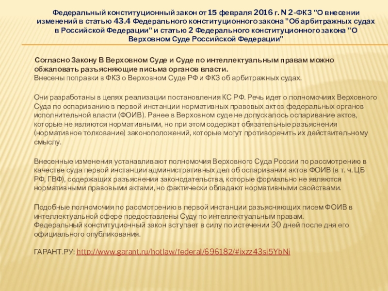 Слайд 75Федеральный конституционный закон от 15 февраля 2016 г. N 2-ФКЗ