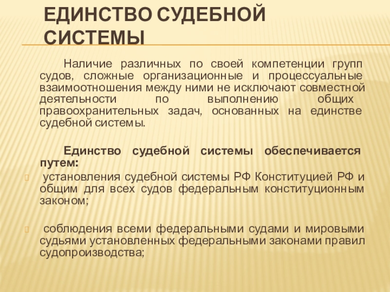 Слайд 14Единство судебной системы