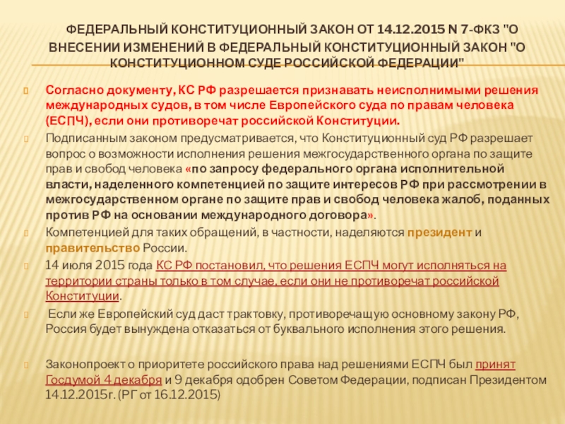 Слайд 77Постановление Конституционного Суда Российской Федерации 14 июля 2015 года по