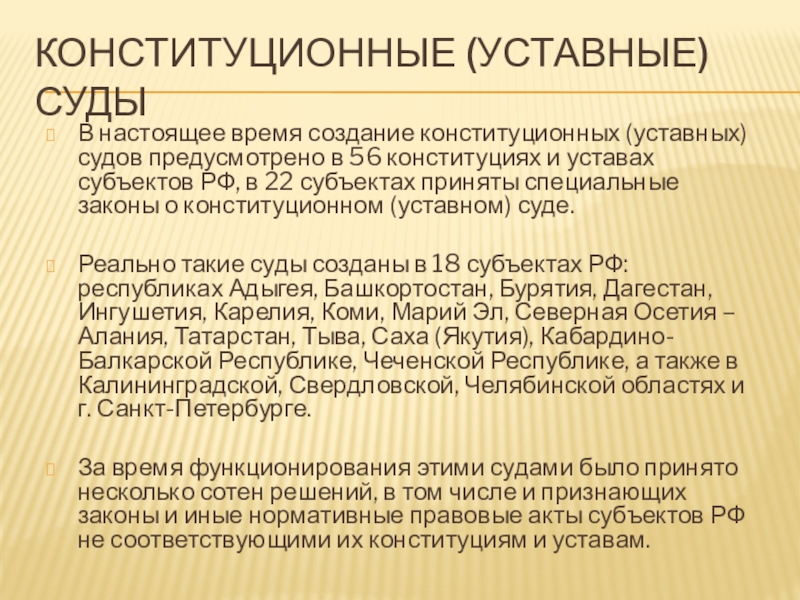 Слайд 84Конституционные (уставные) суды