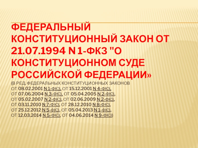 - Федеральный конституционный закон от 05.02.2014 N 4-ФКЗ «О внесении изменений в Федеральный конституционный закон «О судебной системе Российской Федерации»;