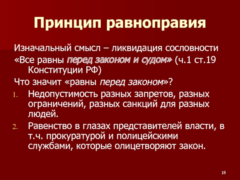 Индивид заведомо и всегда слабее государства. Именно поэтому возник этот принцип, который дает хоть какую–то надежду на защиту от произвола.