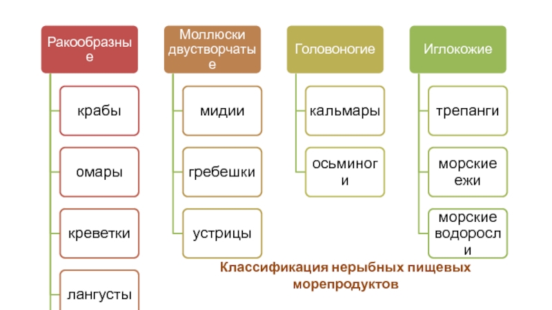 Слайд 6Классификация нерыбных пищевых морепродуктов