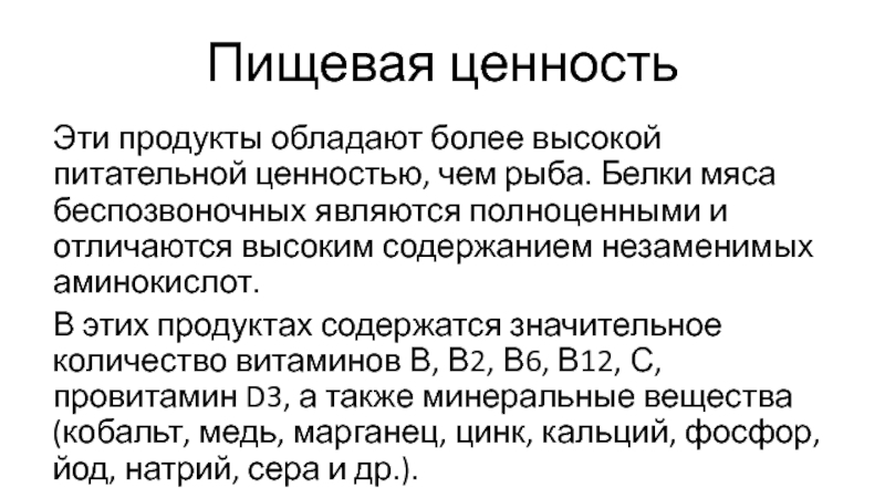 Белки мяса беспозвоночных являются полноценными и отличаются высоким содержанием незаменимых