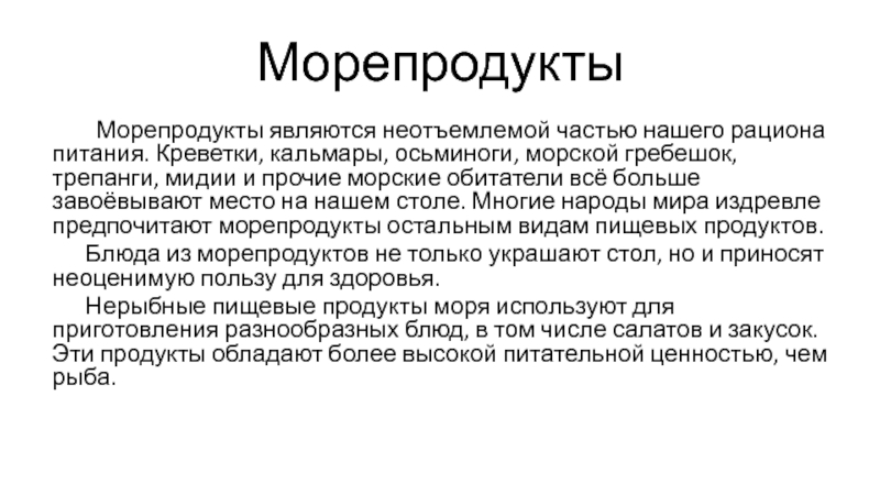 Слайд 3Морепродукты