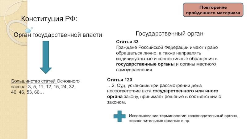 Ч. 1 ст. 11 Конституции Российской Федерации: «Государственную власть в Российской Федерации осуществляют Президент Российской Федерации, Федеральное Собрание (Совет Федерации и Государственная Дума),
