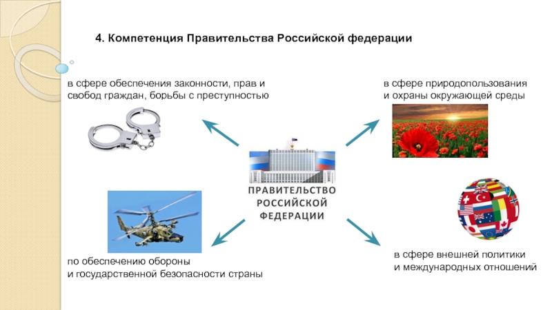 Президент руководит деятельностью ФОИВ, ведающих вопросами обороны, безопасности, внутренних дел, иностранных дел, предотвращения чрезвычайных ситуаций и ликвидации последствий стихийных бедствий (ст. 32 Закона о Правительстве)