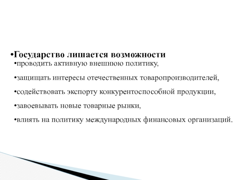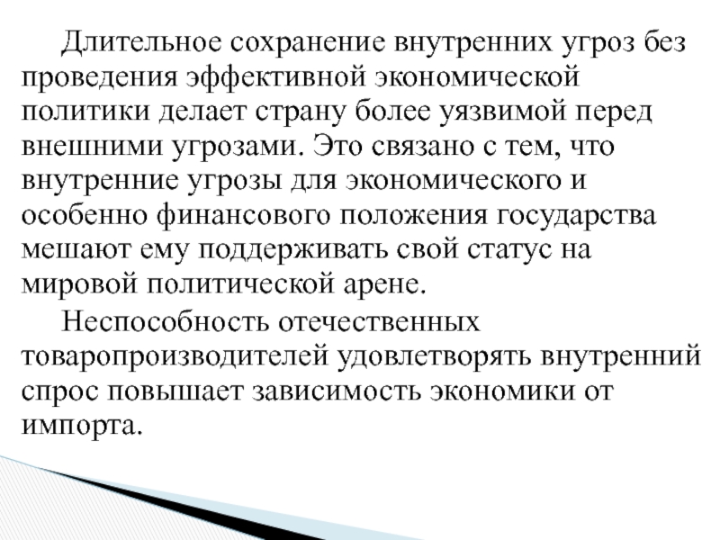 экономической политики делает страну более уязвимой перед внешними угрозами. Это