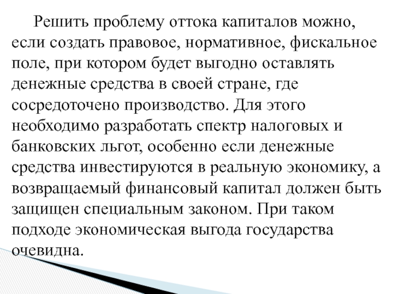 Слайд 34 Решить проблему оттока капиталов можно, если создать