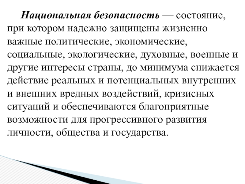 Слайд 6 Национальная безопасность — состояние, при котором надежно