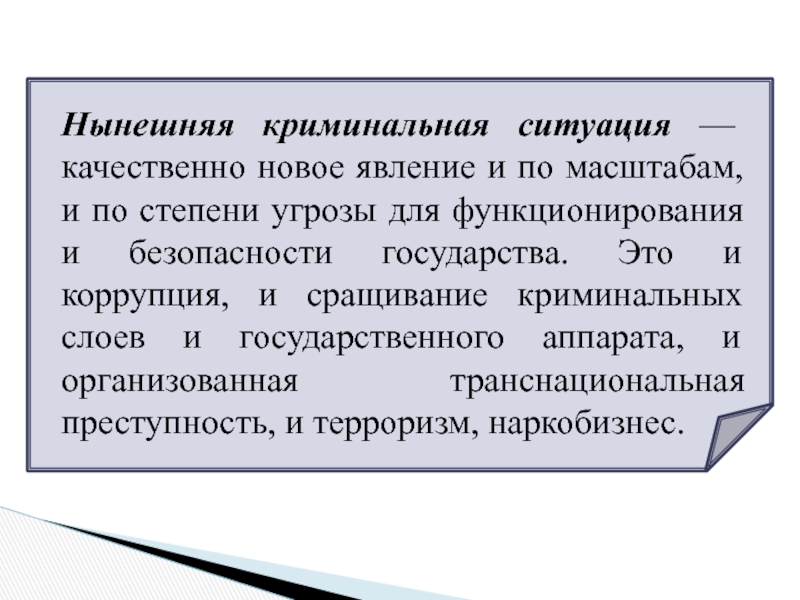 Слайд 13Нынешняя криминальная ситуация — качественно новое явление и по масштабам,