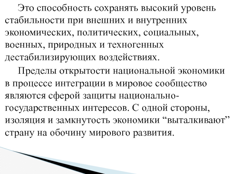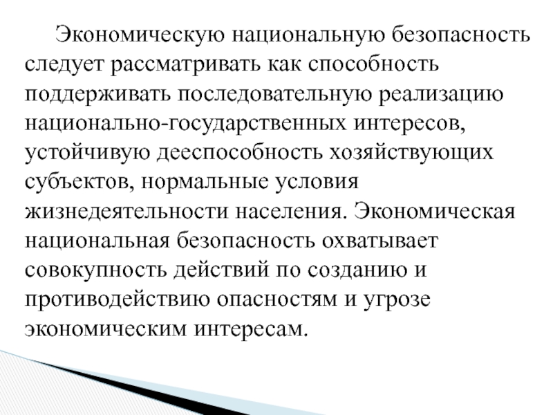 Слайд 17 Экономическую национальную безопасность следует рассматривать как способность