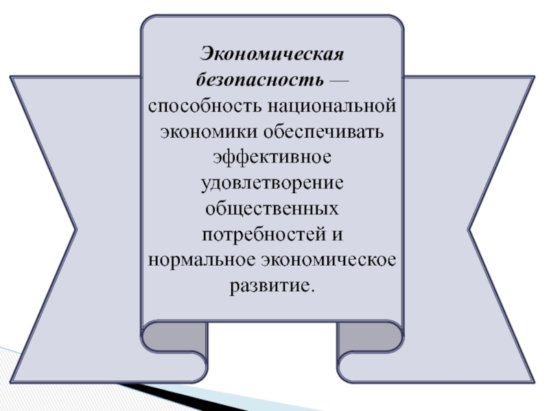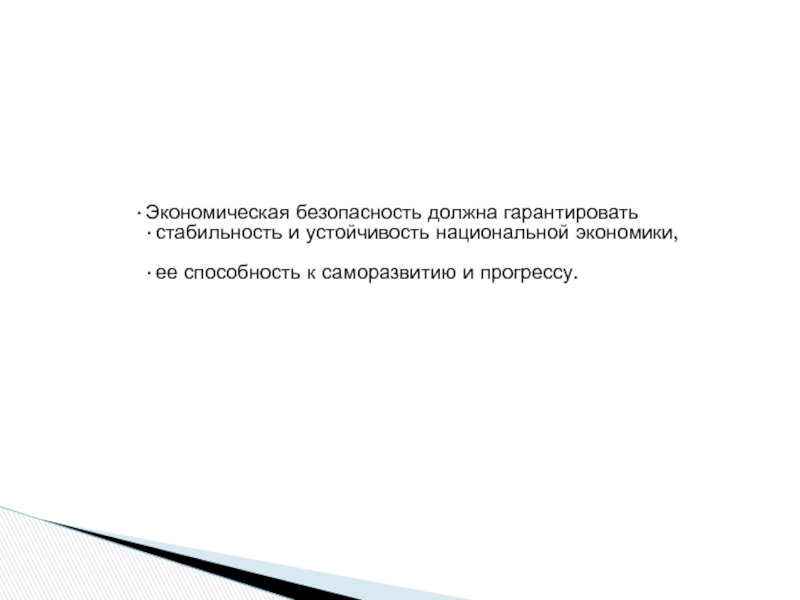 Слайд 18Экономическая безопасность — способность национальной экономики обеспечивать эффективное удовлетворение общественных
