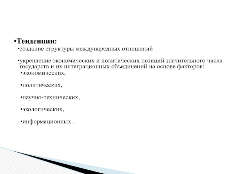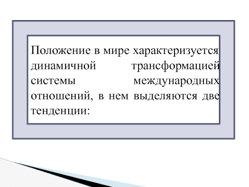 Слайд 10Положение в мире характеризуется динамичной трансформацией системы международных отношений, в
