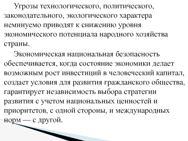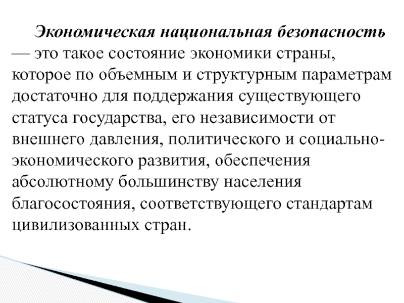 Слайд 24 Экономическая национальная безопасность — это такое состояние