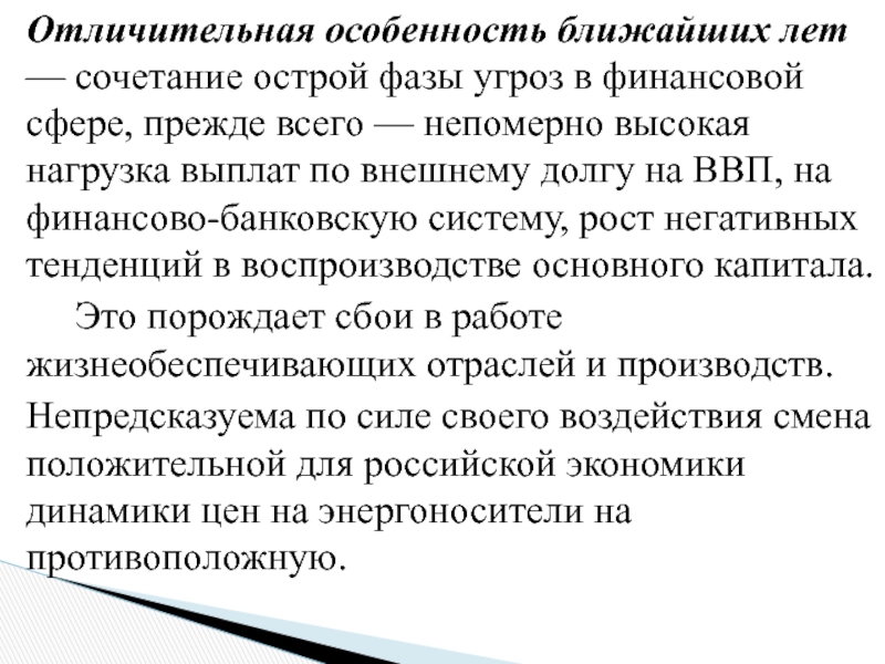 финансовой сфере, прежде всего — непомерно высокая нагрузка выплат по