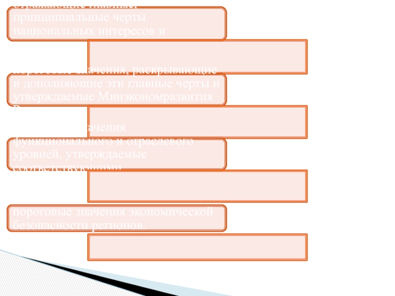 четыре группы пороговых значений индикаторов экономической безопасности: