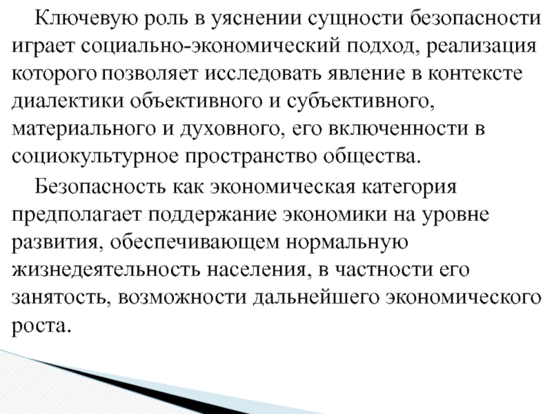 Слайд 7 Ключевую роль в уяснении сущности безопасности играет социально-экономический