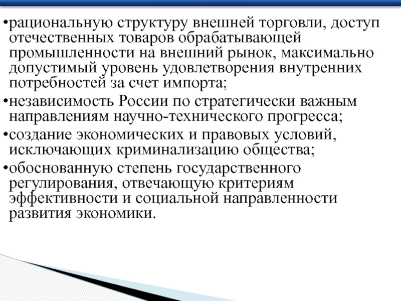 5. При каких условиях возможна реализация задач экономической национальной безопасности?