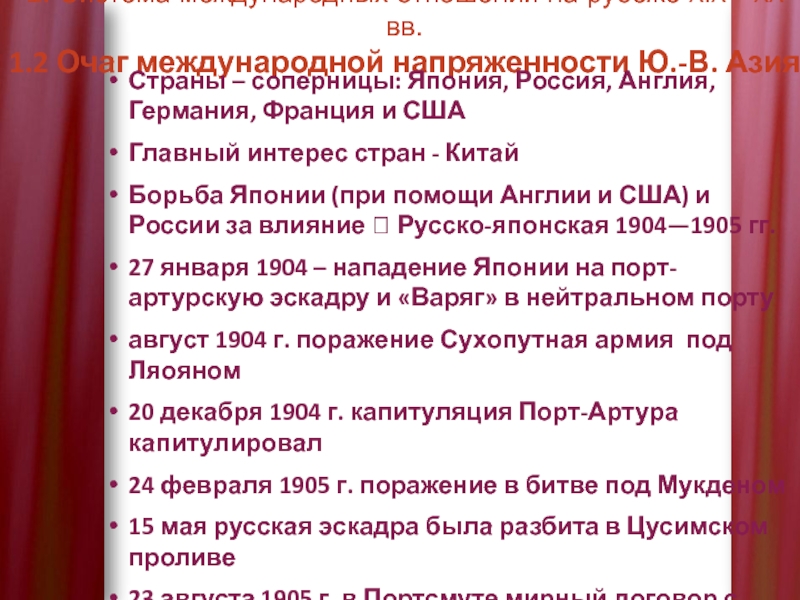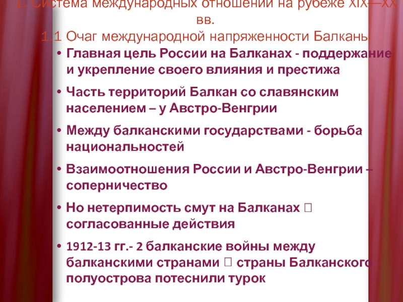 1. Система международных отношений на рубеже XIX—XX вв.