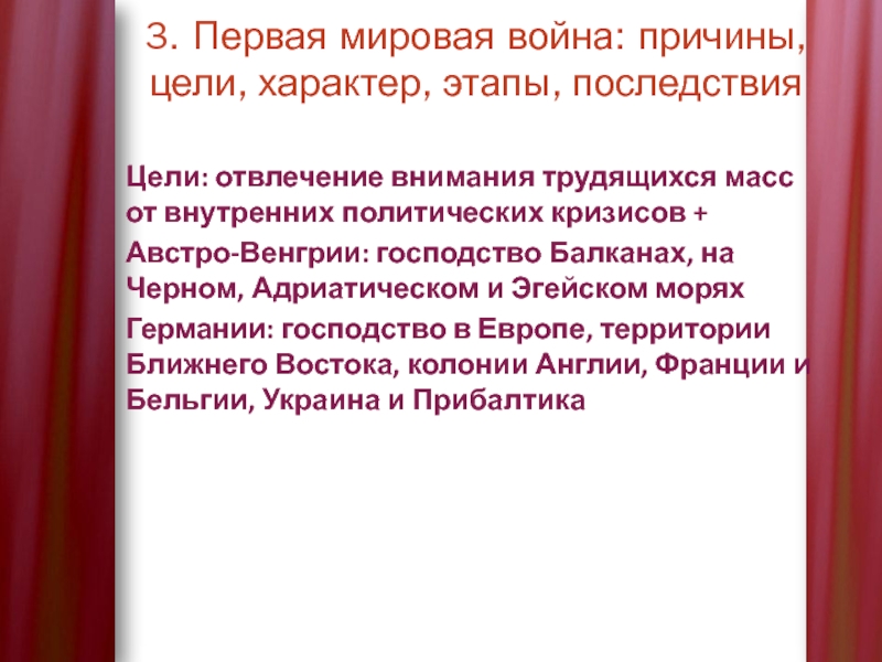 3. Первая мировая война: причины, цели, характер, этапы, последствия