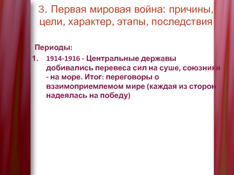 Слайд 133. Первая мировая война: причины, цели, характер, этапы, последствия