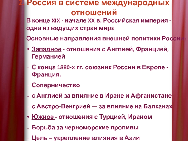 2. Россия в системе международных отношений