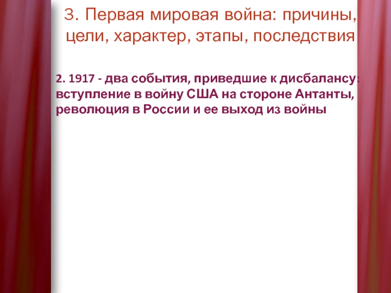 1917 - два события, приведшие к дисбалансу: вступление в войну