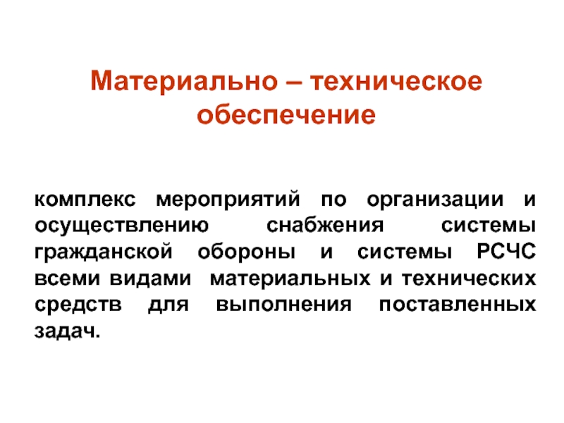 снабжения системы гражданской обороны и системы РСЧС всеми видами материальных