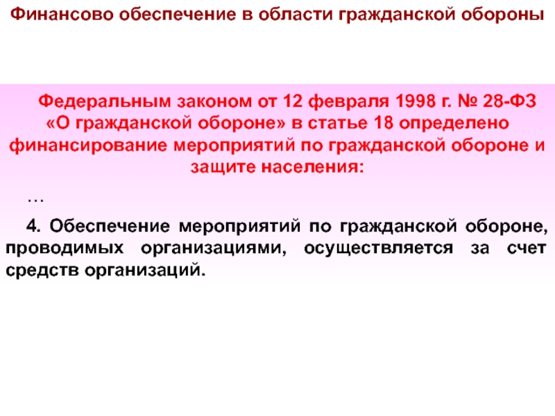 ФЗ №28 Статья 9. Полномочия организаций в области гражданской обороны