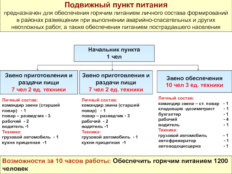 определение потребного количества пунктов питания, в том числе подвижных, с использованием местных ресурсов;