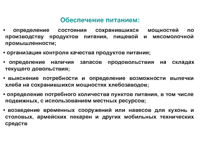 определение состояния сохранившихся мощностей по производству продуктов питания,