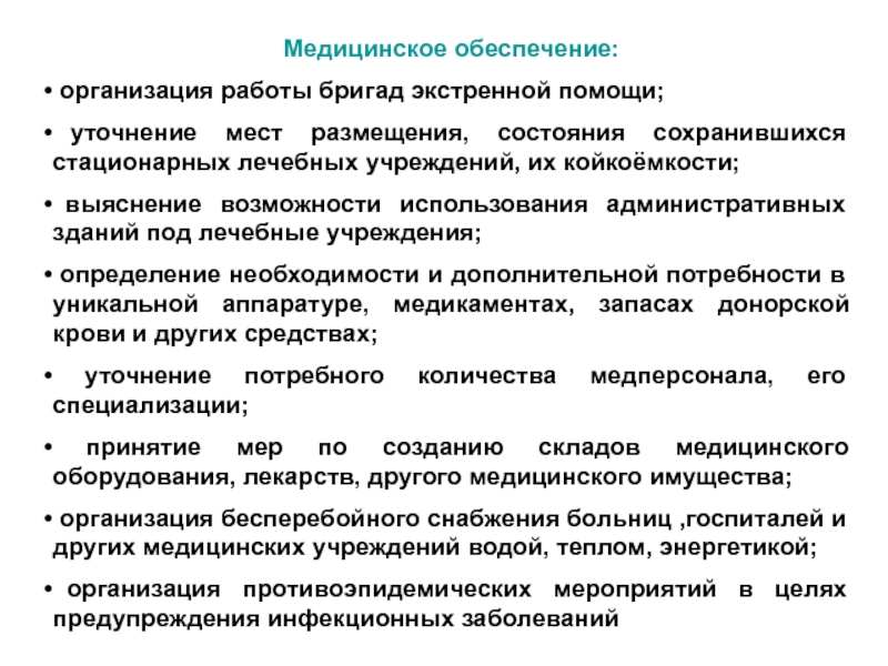 Слайд 41Медицинское обеспечение: