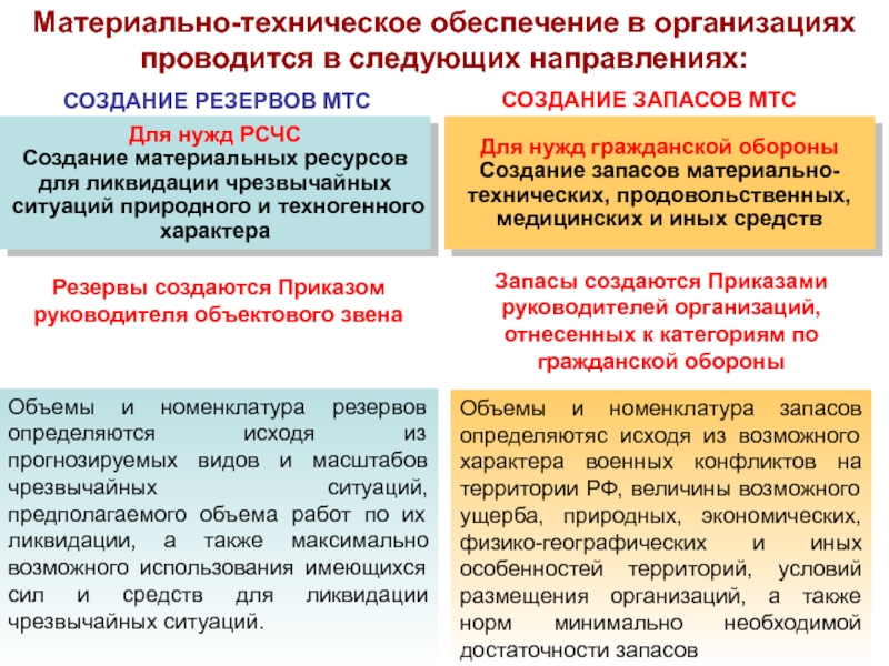 и поддержания в постоянной готовности запасов материальных средств и резервов.