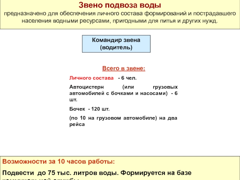 Подвести до 75 тыс. литров воды. Формируется на базе коммунальной службы.