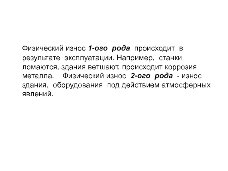 Например, станки ломаются, здания ветшают, происходит коррозия металла. Физический